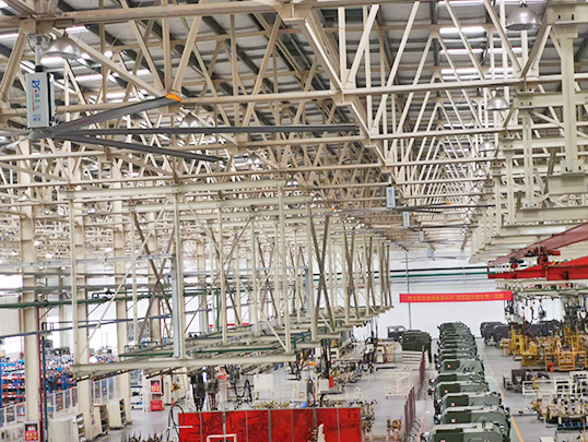 方案的詳細說明:使用大風扇實現(xiàn)了科學的空氣流通,車間..